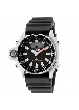 428,00 €Orologio Citizen Acqualand 1, divers professionale certificato ISO, cinturino in silicone, quadrante analogico e quarzo fondo nero, sensore di profondità. fondello e corona serrate a vite, ghiera girevole, vetro minerale, cassa acciaio.