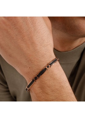 105,00 €Bracciale semirigido in acciaio 316L, finiture colore oro rosa lucido e rutenio satinato con cubic zirconia black.