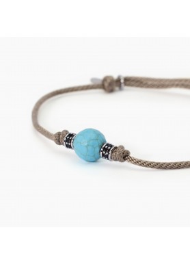 29,00 €Bracciale da uomo in argento rodiato con cordino sabbia, pietra turchese e inserti con zirconi marroni