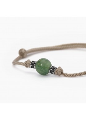 29,00 €Bracciale da uomo in argento rodiato con cordino sabbia, giada verde e inserti con zirconi neri.