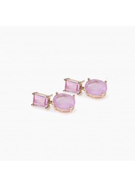 56,00 €Orecchini da donna in argento placcato oro rosa con glass rosa taglio baguette, pendente in fusion stone di glass rosa e cristallo di rocca taglio ovale.