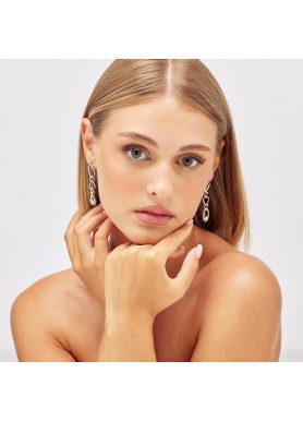 99,00 €Orecchini pendenti Bronzallure realizzati in lega Golden Rosé, placcata Oro rosa 18kt, con maglia veneziana e dettaglio in pavé di cubic zirconia, qualità luminosa. Lunghezza 3 cm. Chiusura a perno e farfalla.