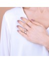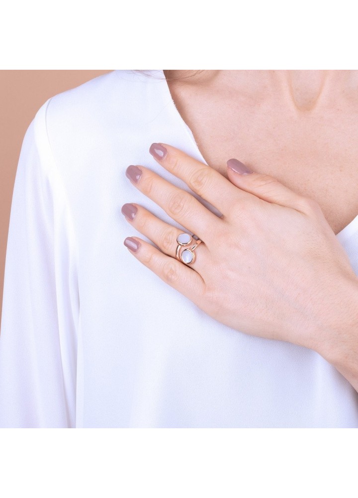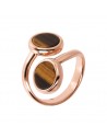 L'anello contrarié con dischi in pietra colorata e Golden Rosé ha un design grafico e essenziale con torchon e elementi
