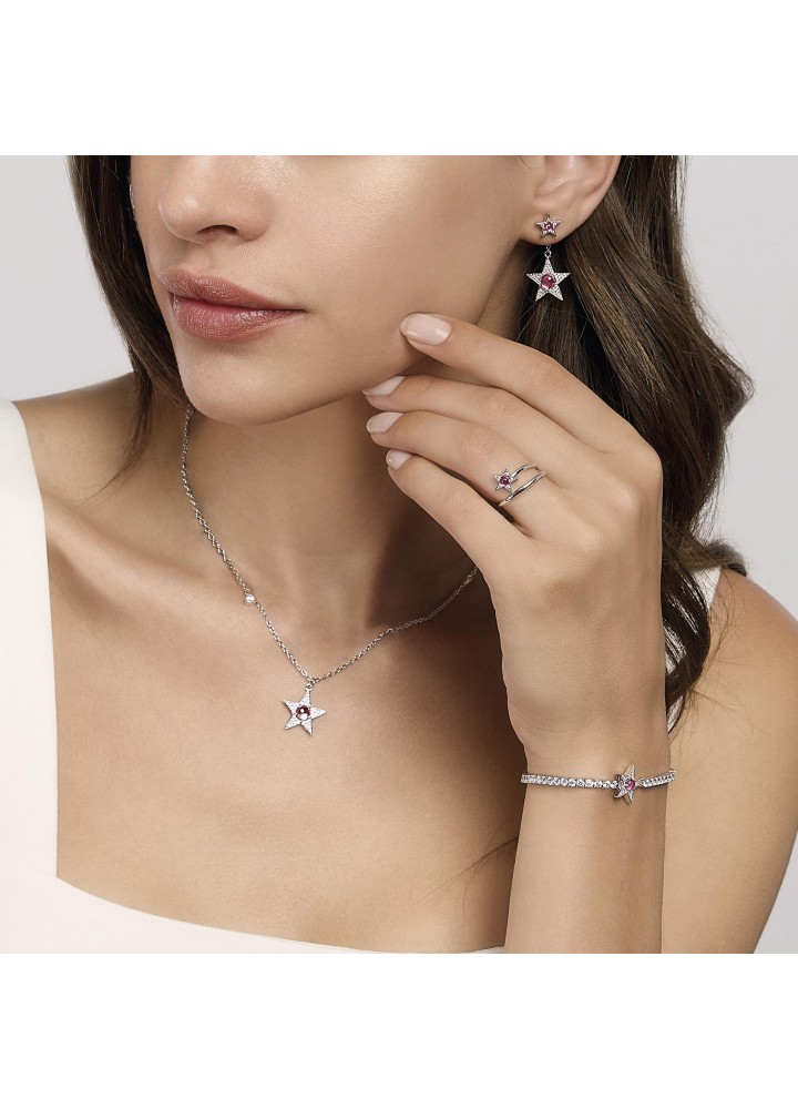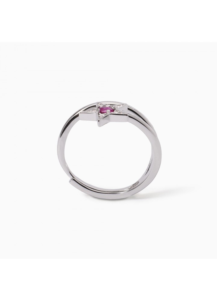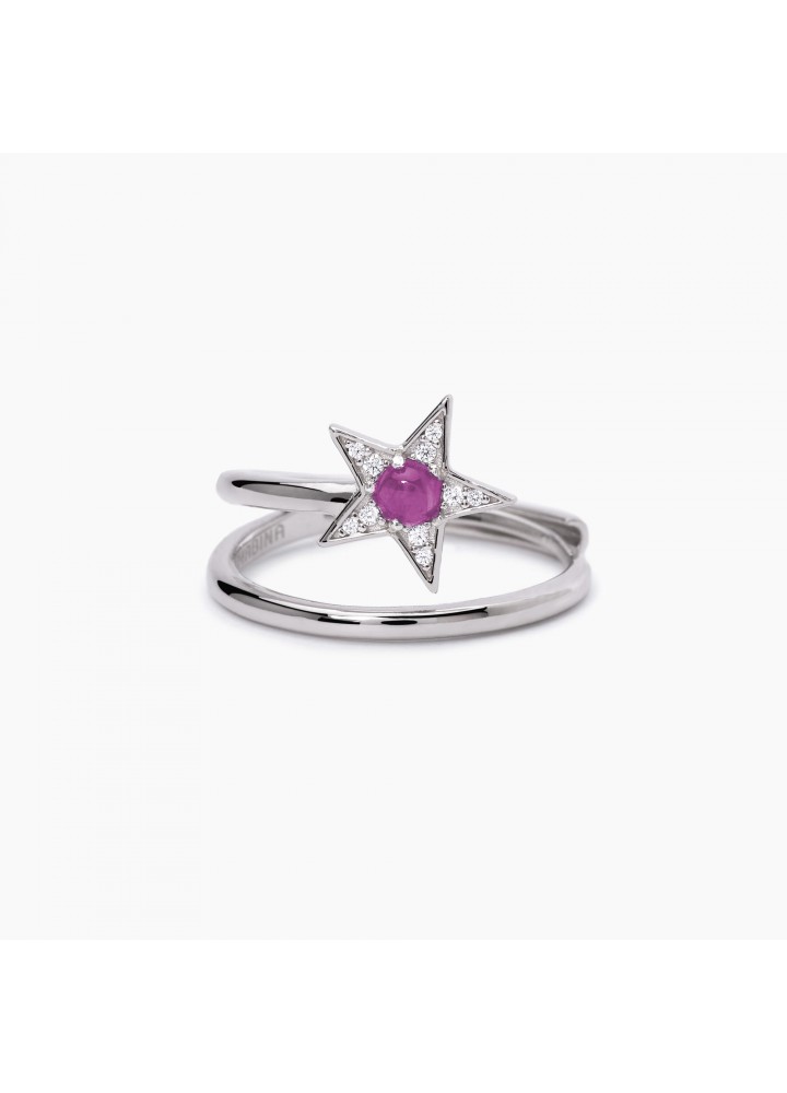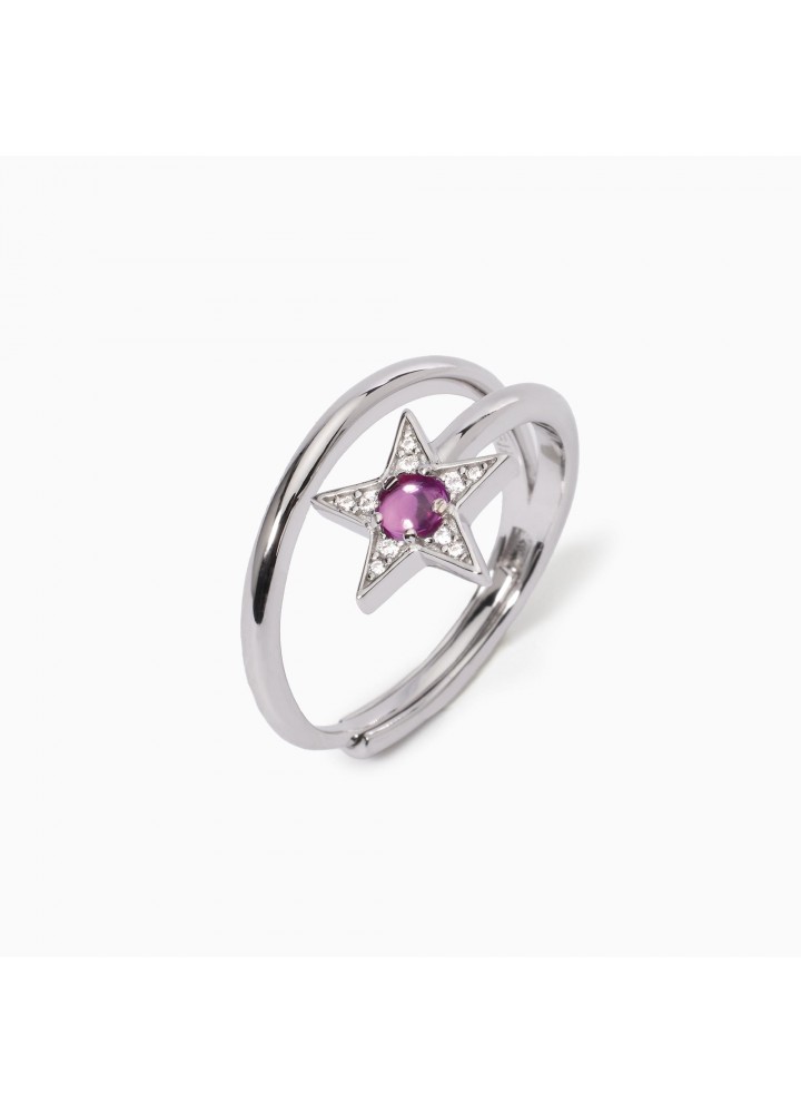Anello regolabile in argento con stella in pavè di zirconi bianchi e tormalina sintetica centrale.