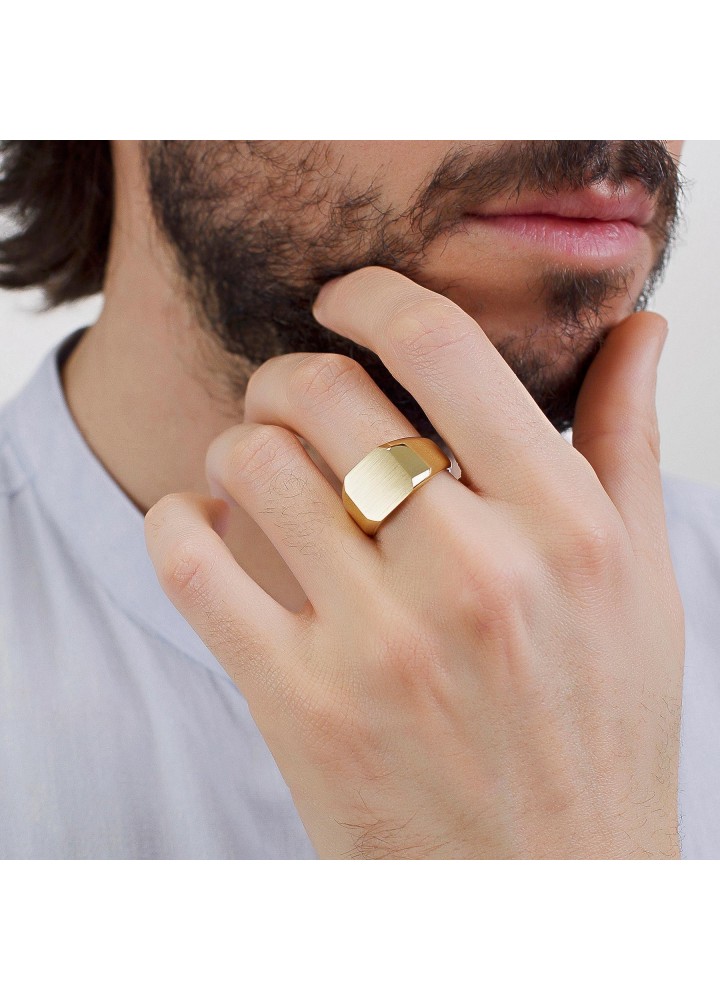Anello sigillo in acciaio 316L e pvd oro con possibilità di incisione.