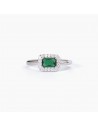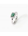 Anello da donna in argento con smeraldo sintetico ottagonale e zirconi bianchi.
