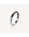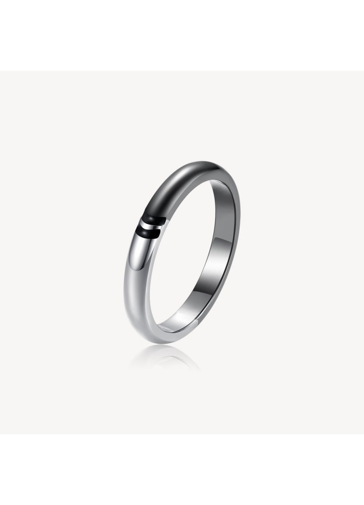 Anello slim pipe in acciaio 316L lucido e finitura pvd colore rutenio con dettagli smaltati in colore nero.
