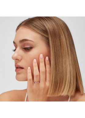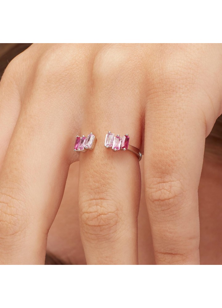 Anello in argento rodiato 925‰ con baguette cubic zirconia colore light ruby.