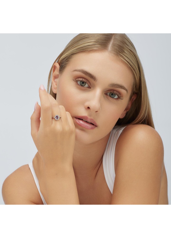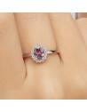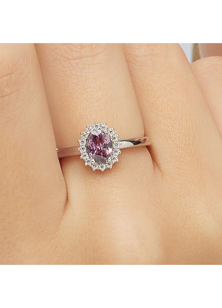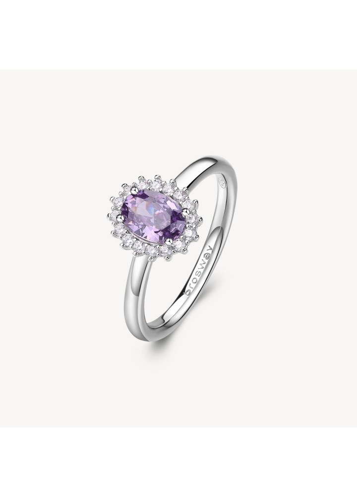 Anello kate in argento rodiato 925‰ con oval cubic zirconia chiari e colore amethyst.