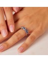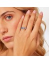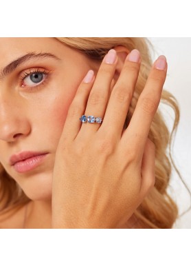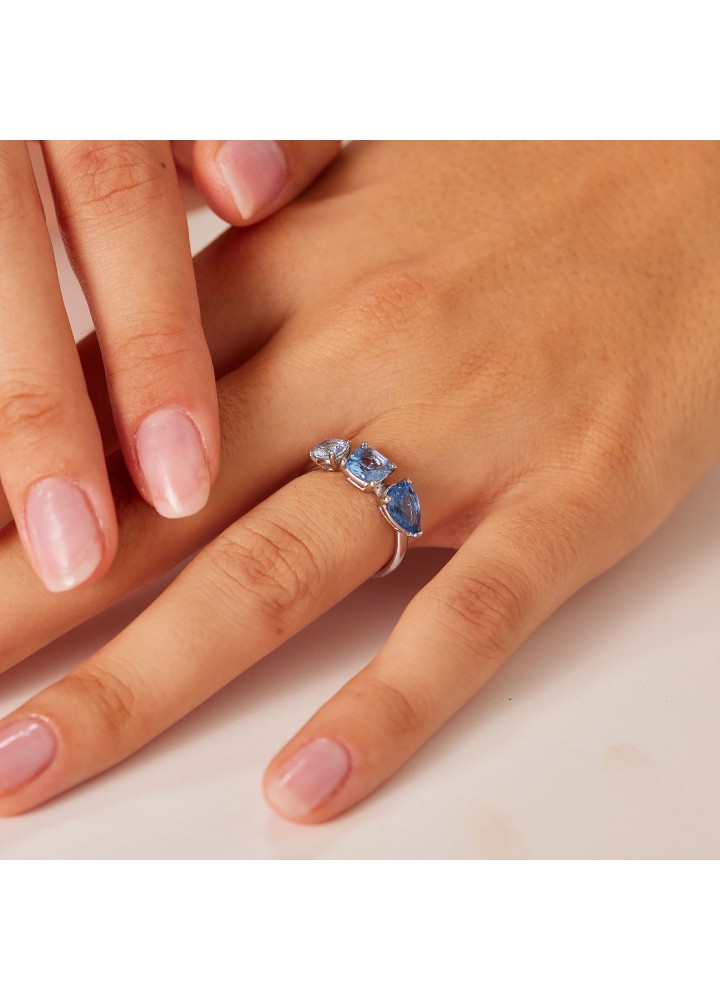 Anello in acciaio 316L con cubic zirconia square, cushion e pear colore light sapphire.
