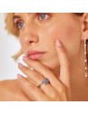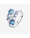 Anello contrarié in acciaio 316L con cubic zirconia round e cushion colore light sapphire.