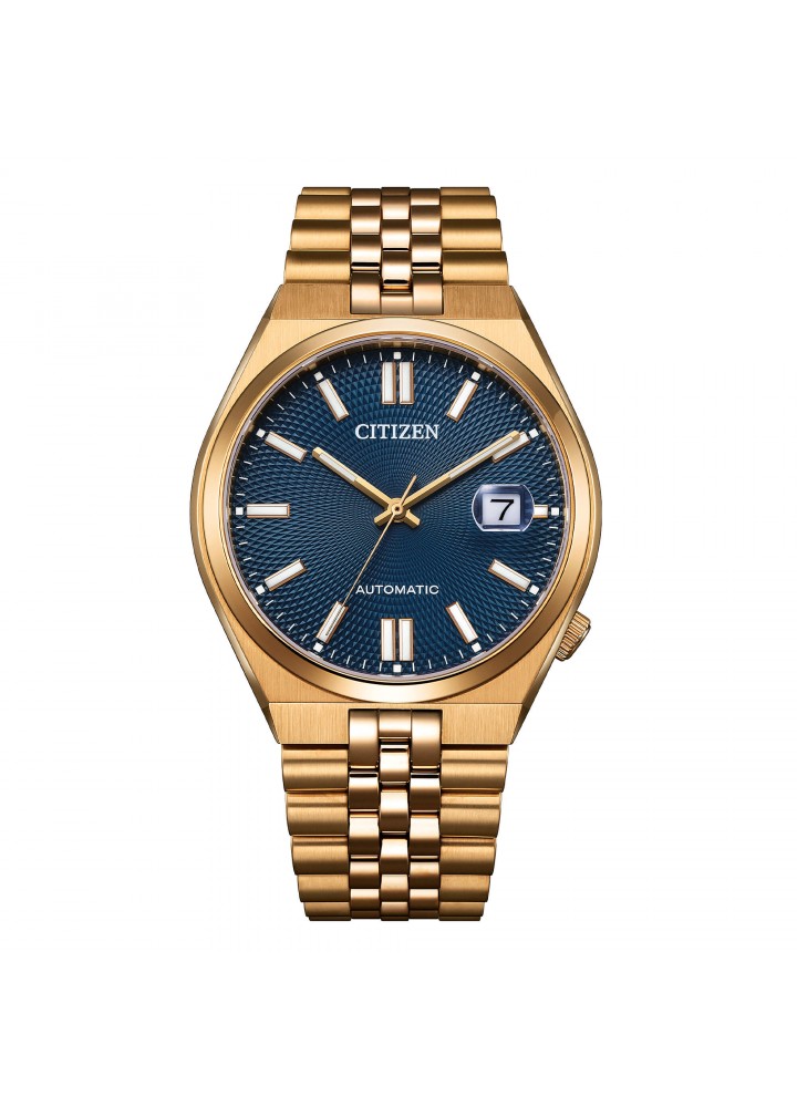 Orologio Citizen Uomo automatico, cassa e cinturino in acciaio Rosè, quadrante Blu, della collezione Tsuyosa.