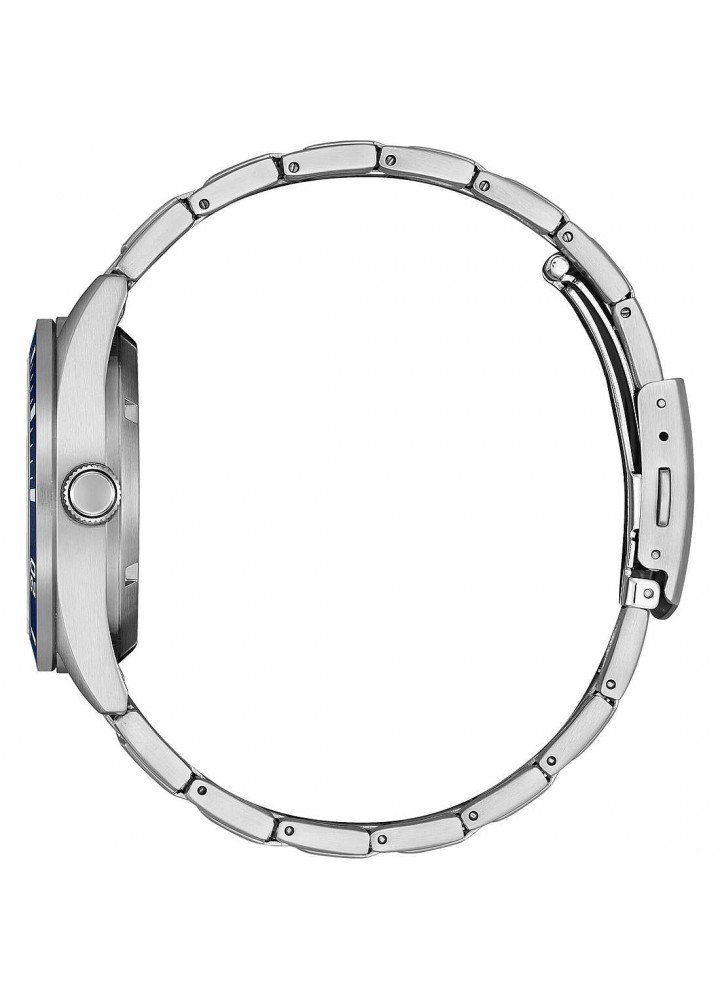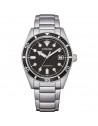 Orologio di Citizen della collezione OF Collection 2026. Orologio meccanico automatico da uomo con cassa in acciaio con fondello serrato a vite e oblò trasparente e diametro di 38,5 mm; quadrante nero con indici applicati e ghiera blu, vetro minerale. Bracciale in acciaio con chiusura a pulsante. Resistenza all’acqua di 10 ATM e movimento meccanico a ricarica automatica con 21 rubini e riserva di carica di 40 ore.