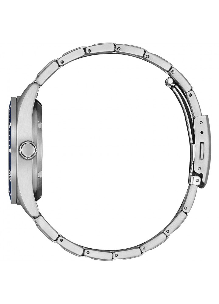 Orologio di Citizen della collezione OF Collection 2026. Orologio meccanico automatico da uomo con cassa in acciaio con fondello serrato a vite e oblò trasparente e diametro di 38,5 mm; quadrante blu con indici applicati e ghiera blu, vetro minerale. Bracciale in acciaio con chiusura a pulsante. Resistenza all’acqua di 10 ATM e movimento meccanico a ricarica automatica con 21 rubini e riserva di carica di 40 ore.