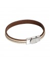 Bracciale in pelle naturale marrone ed inserti di nylon intrecciato beige, bianco e marrone Bracciale in pelle naturale marrone ed inserti di nylon intrecciato beige, bianco e marrone, con chiusura a scatto (lunghezza cm 21). Cod. ABR391