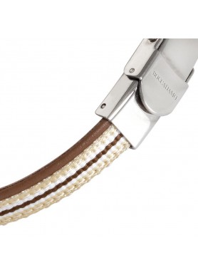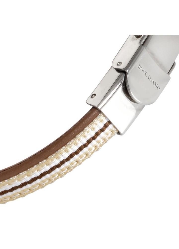 Bracciale in pelle naturale marrone ed inserti di nylon intrecciato beige, bianco e marrone