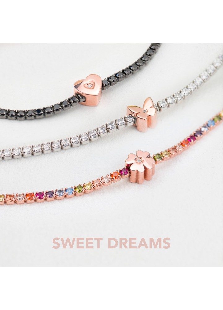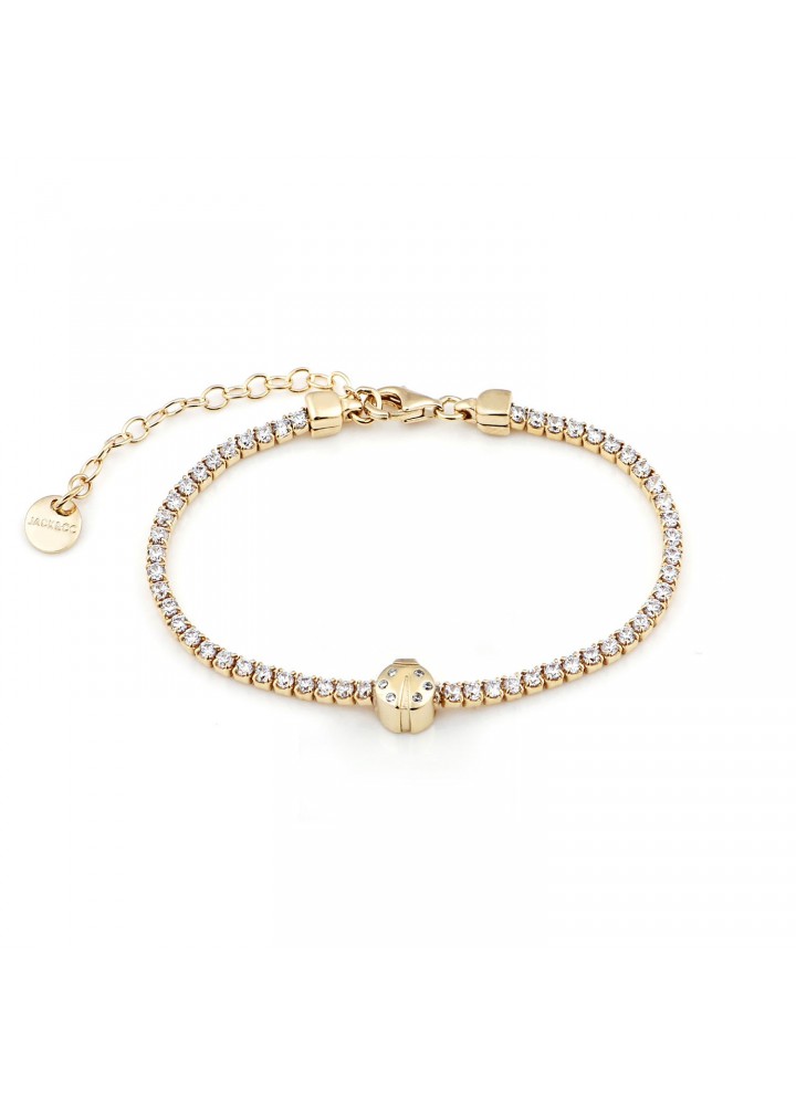 Bracciale, tennis di zirconi gold, Coccinella placcata oro giallo con zirconi. Lunghezza: 15 – 19 cm. Argento 925 Made in Italy.