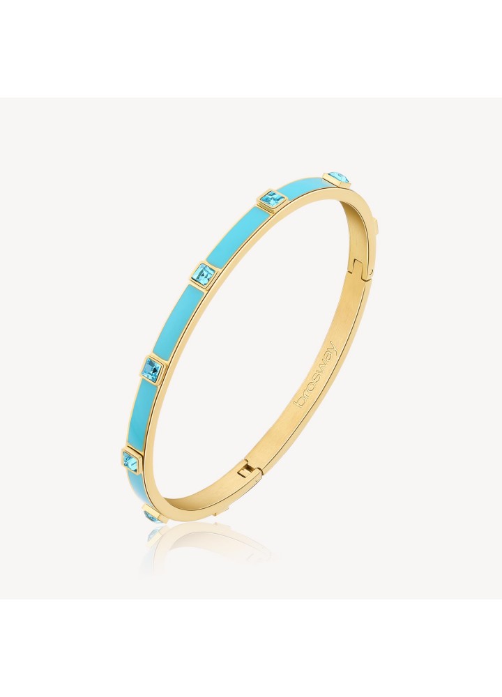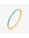 Bracciale rigido in acciaio 316L, finitura color oro, incisione, smalto turchese e cristalli aquamarine.