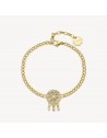 Bracciale grumetta in acciaio 316L, con finitura color oro, pendente a forma di acchiappasogni e cristalli crystal.