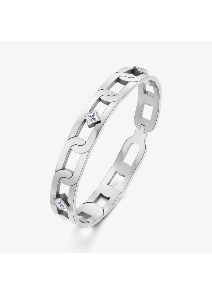 Bracciale rigido in acciaio 316L con incisione e cristalli crystal.
