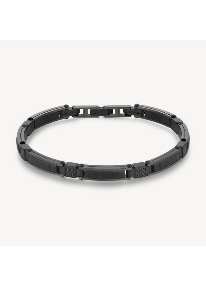 Bracciale in acciaio 316L e pvd nero lucido e satinato. Gioiello della collezione Backliner. Misura 210 mm. Referenza BBC14