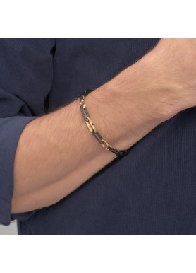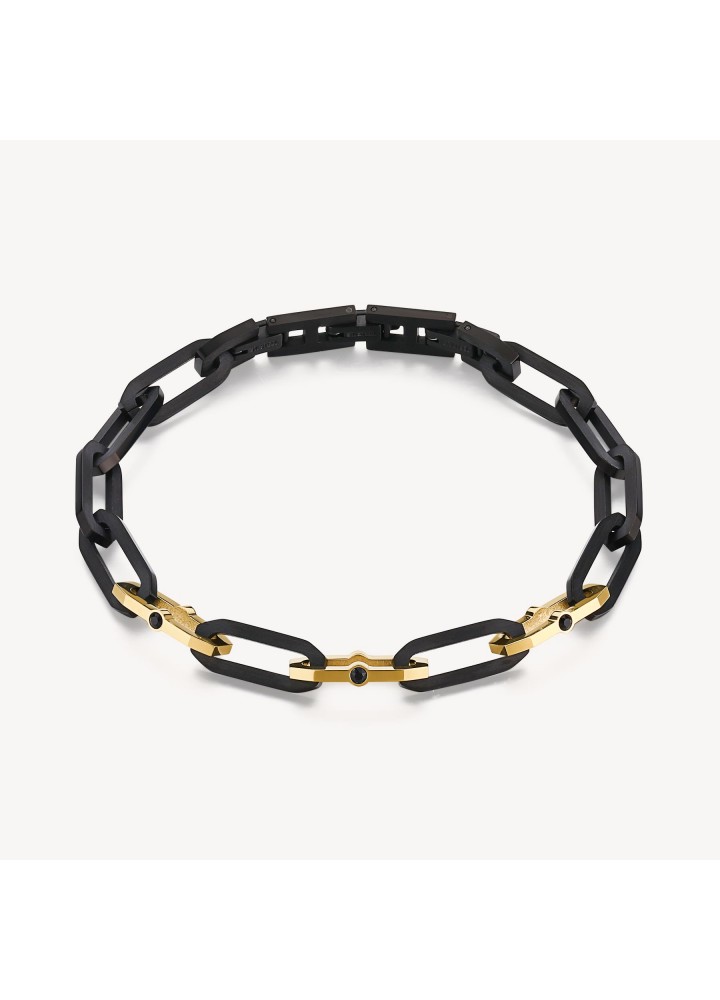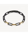 Bracciale in acciaio 316L, pvd nero lucido e satinato, pvd oro e cristalli jet.