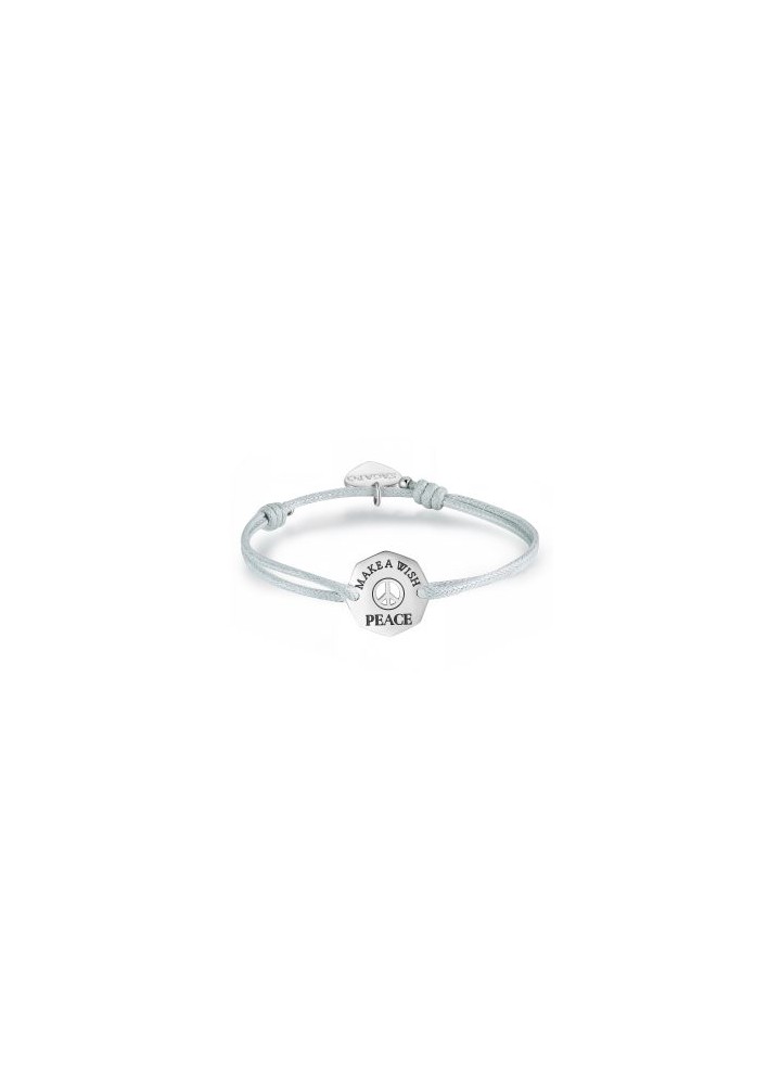 Bracciale da donna di S'Agapo' della collezione Make a wish. Bracciale in cordoncino e acciaio con scritta Peace. Lunghezza 240 mm. Referenza SMW13