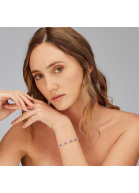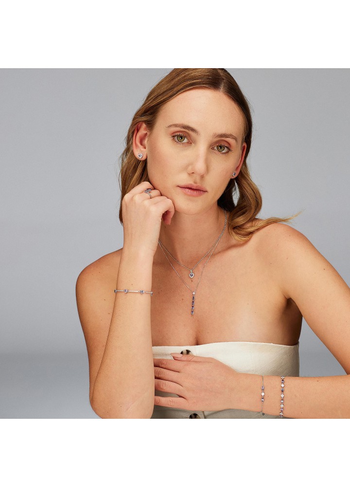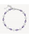 Bracciale in argento rodiato 925‰ con square cubic zirconia e pear cubic zirconia colore amethyst.