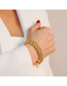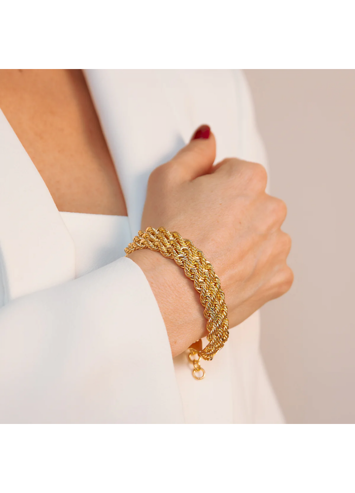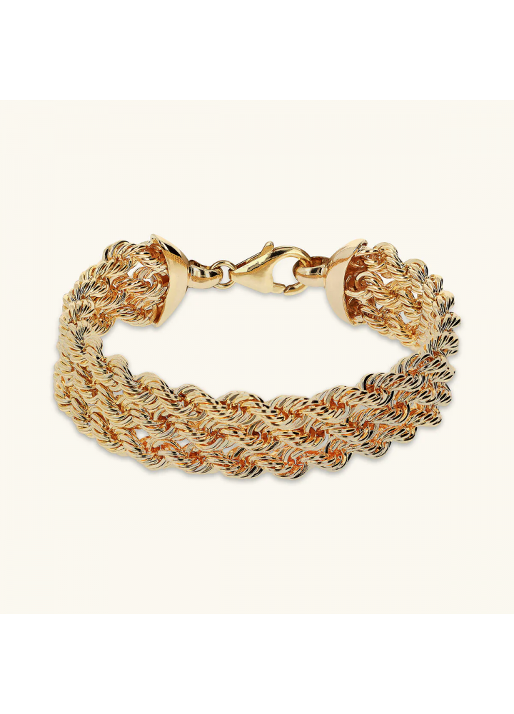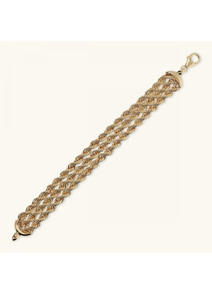 Bracciale Etrusca Gioielli multi-filo realizzato in lega Golden, placcata Oro giallo 18kt, con triplo filo di maxi catena corda. Chiusura a moschettone.
