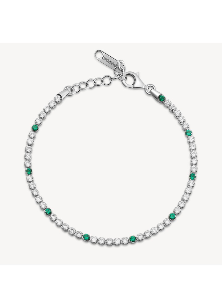 Bracciale tennis in argento rodiato 925‰ con cubic zirconia chiari e cubic zirconia colore emerald.