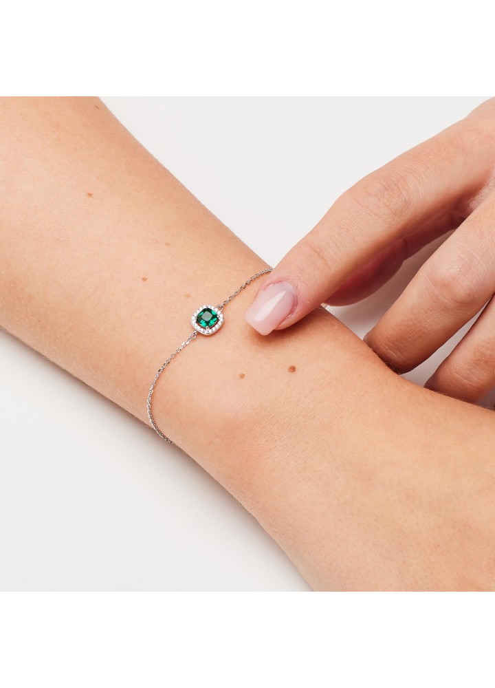 Bracciale in argento rodiato 925‰ con cubic zirconia chiari e cubic zirconia colore emerald.