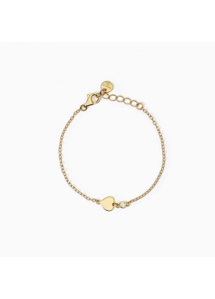 Bracciale regolabile da bambina in argento placcato oro 18K con catena forzatina, cuoricino e zircone.