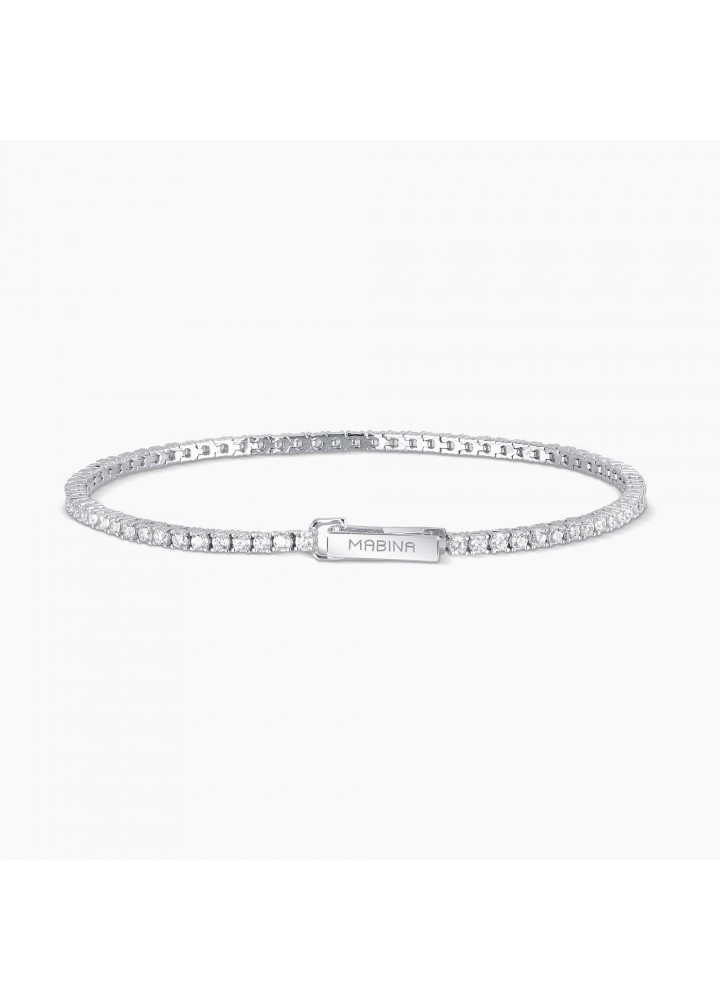 Bracciale tennis in argento con zirconi. Incastonatura degli zirconi a griffe. Diametro degli zirconi: 2 mm. Chiusura a pinza con molla. Referenza 533355