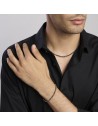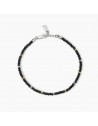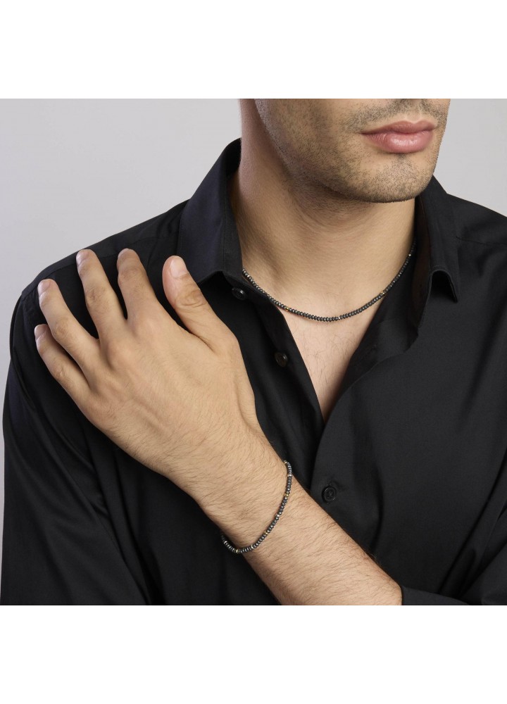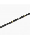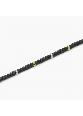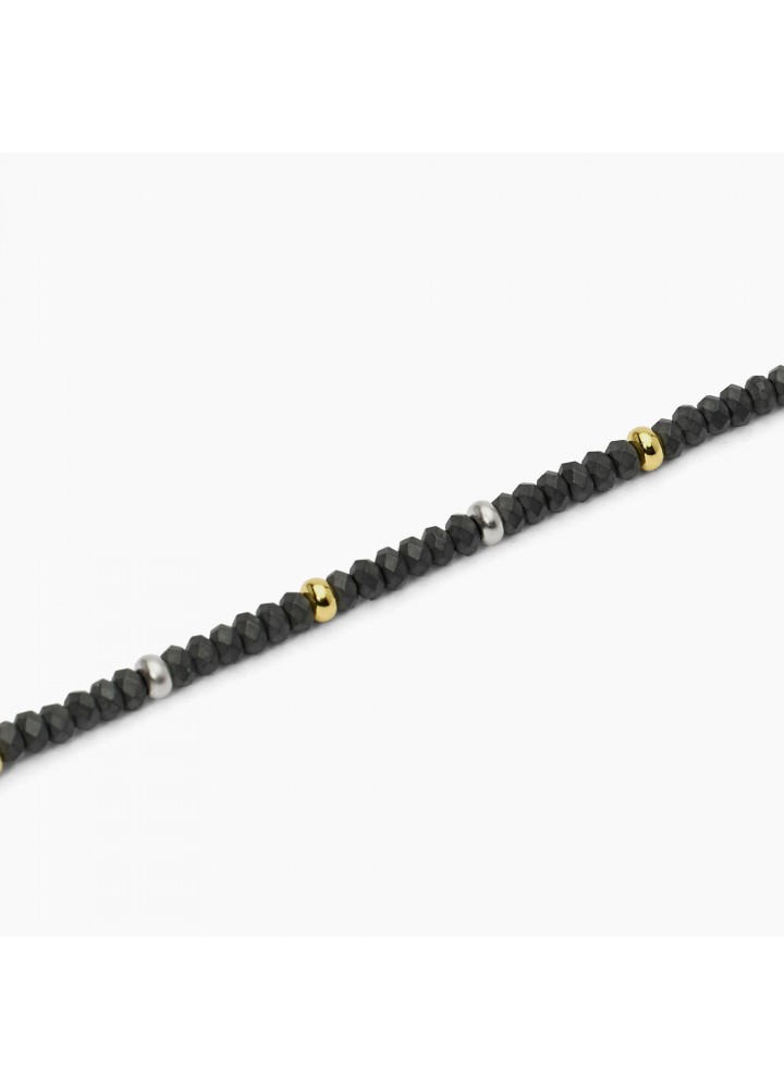 Bracciale da uomo regolabile in argento rodiato con rondelle sfaccettate di ematite e inserti placcati oro giallo.