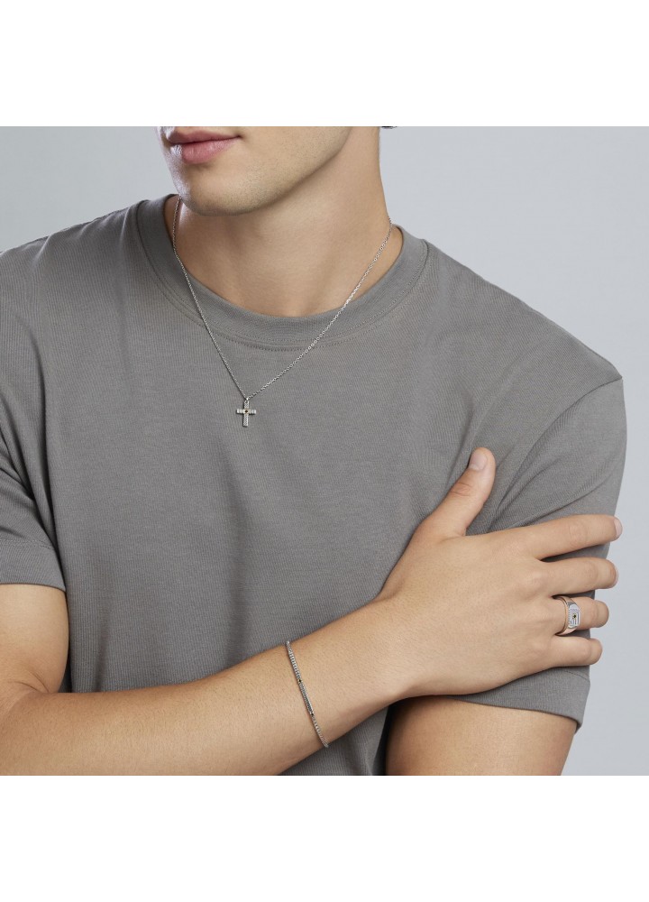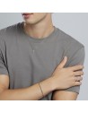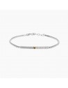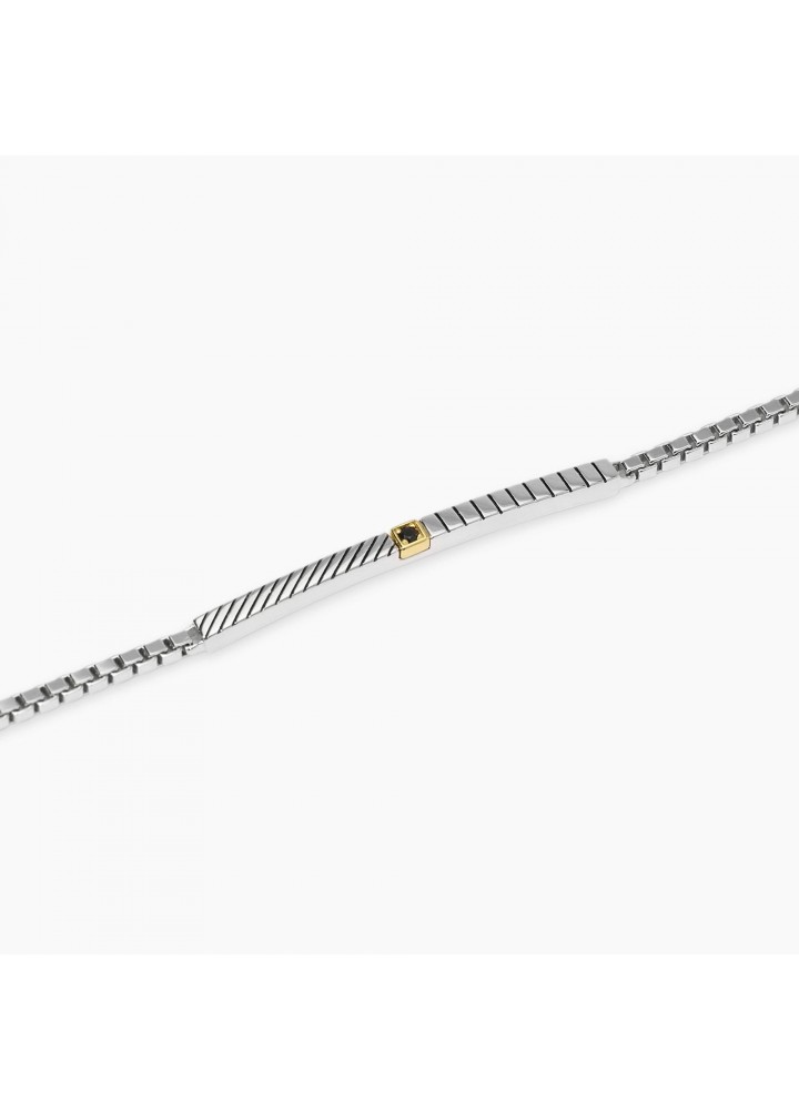 Bracciale regolabile in argento rodiato con catena veneta e pisatra centrale in argento lucido con zircone nero e placcaturaoro 18K.