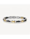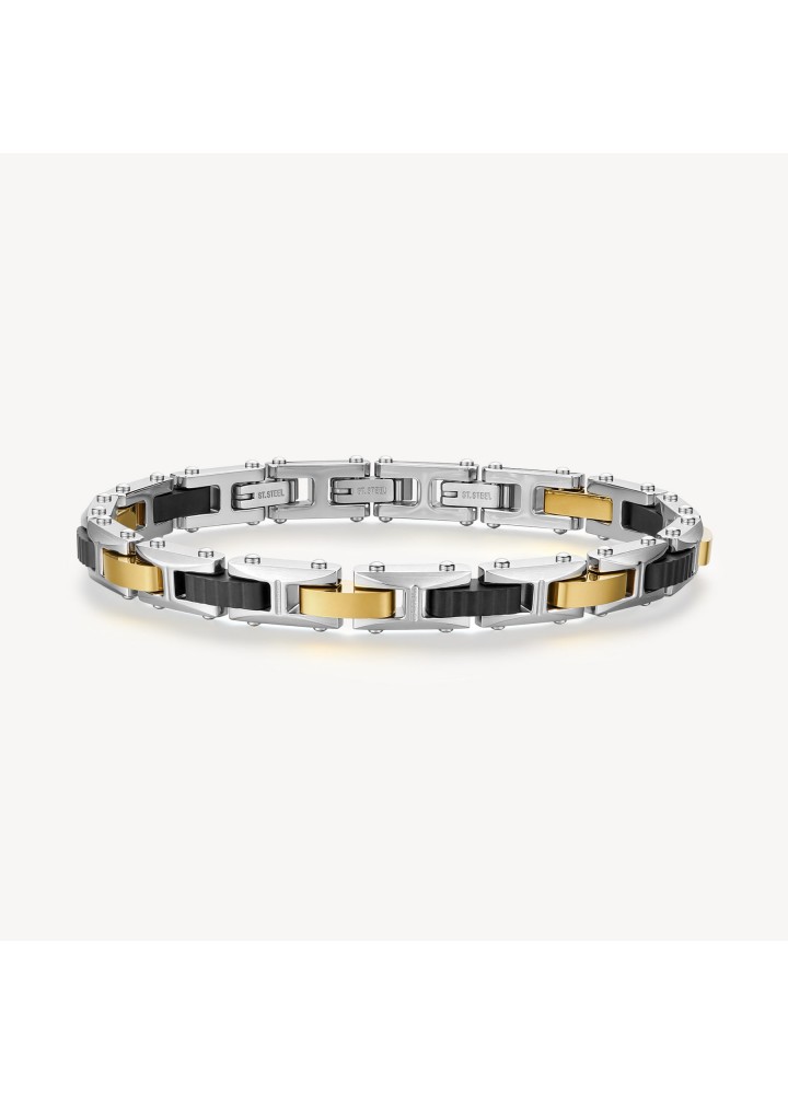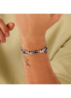 Bracciale in acciaio 316L e finitura pvd colore rutenio e finitura pvd oro 14K.