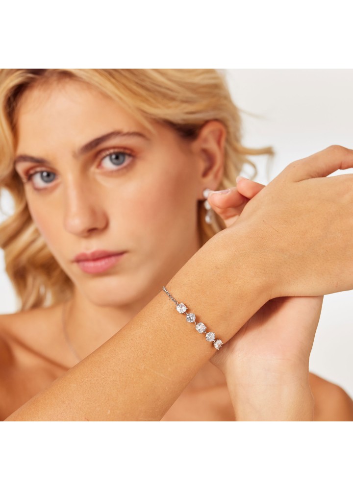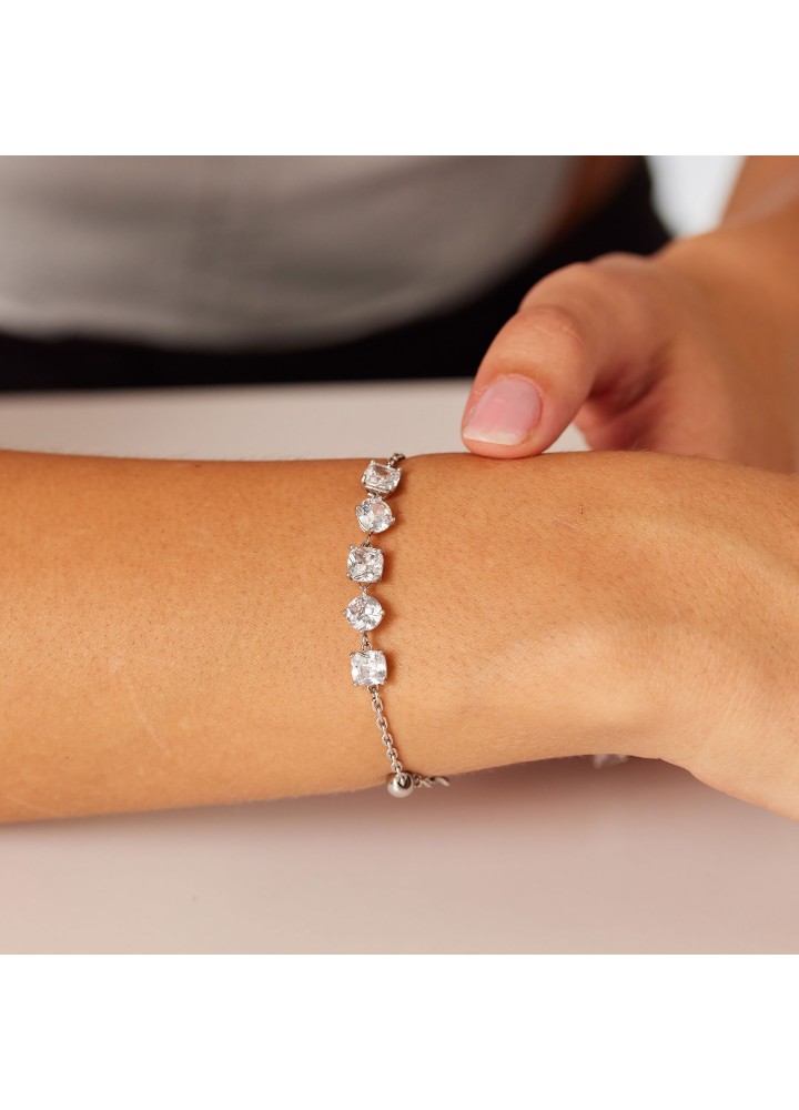 Bracciale in acciaio 316L con round e cushion cubic zirconia.