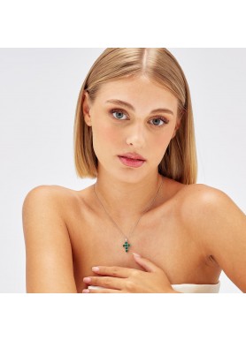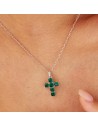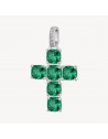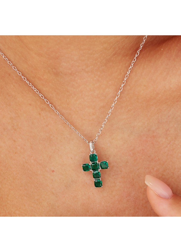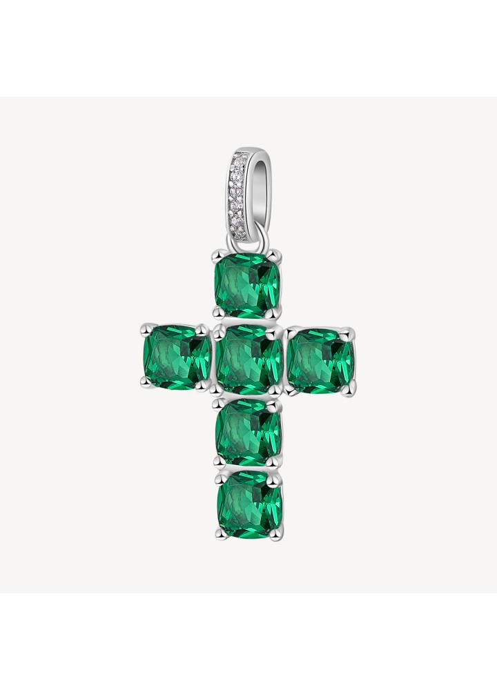 Pendente a forma di croce in argento rodiato 925‰ con cushion cubic zirconia colore emerald.