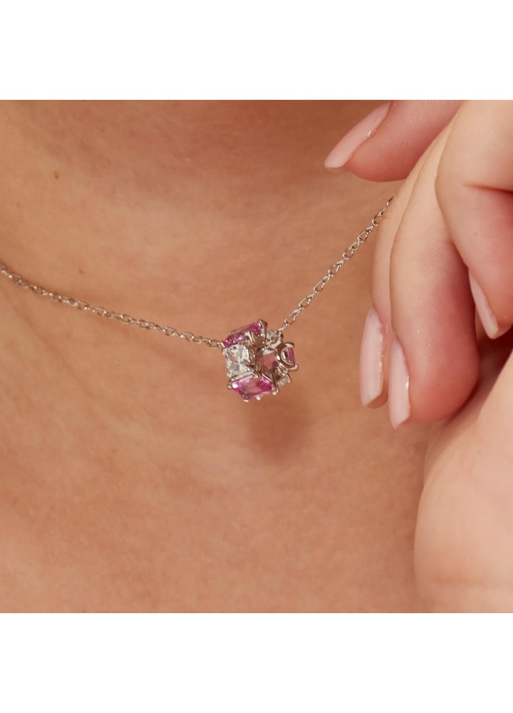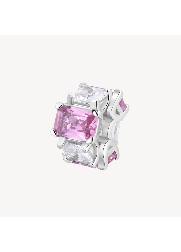 Color charm in argento rodiato 925‰ con square cubic zirconia chiari e baguette cubic zirconia colore light ruby.