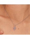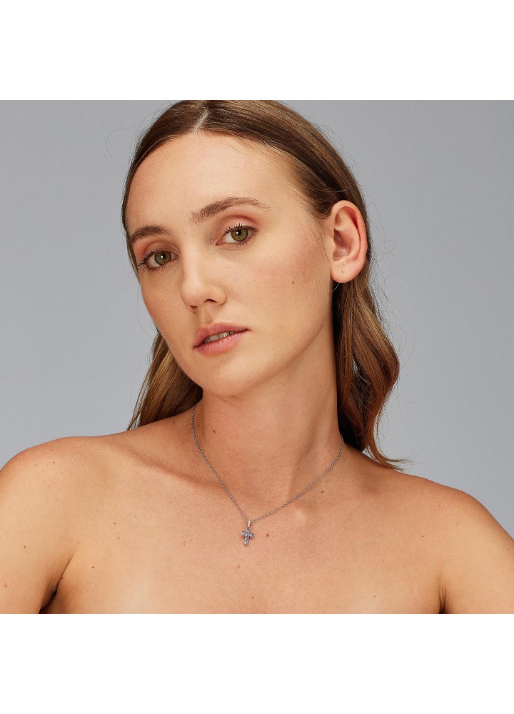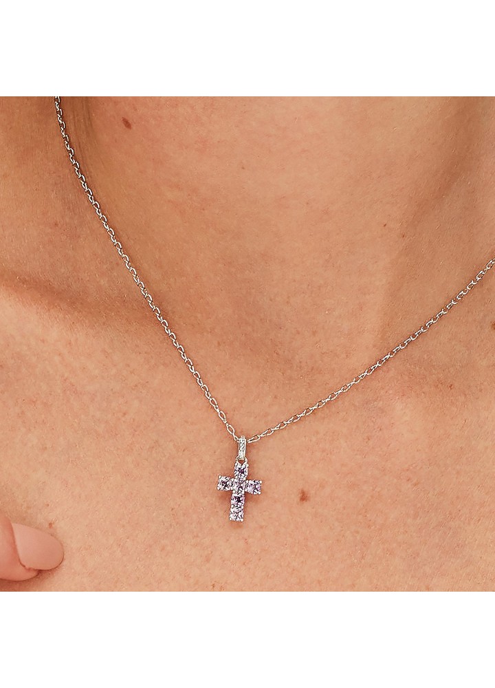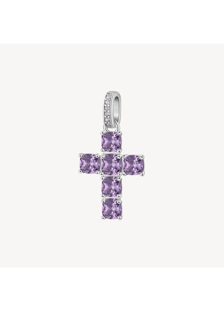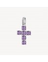 Pendente a forma di croce in argento rodiato 925‰ con cushion cubic zirconia colore amethyst.