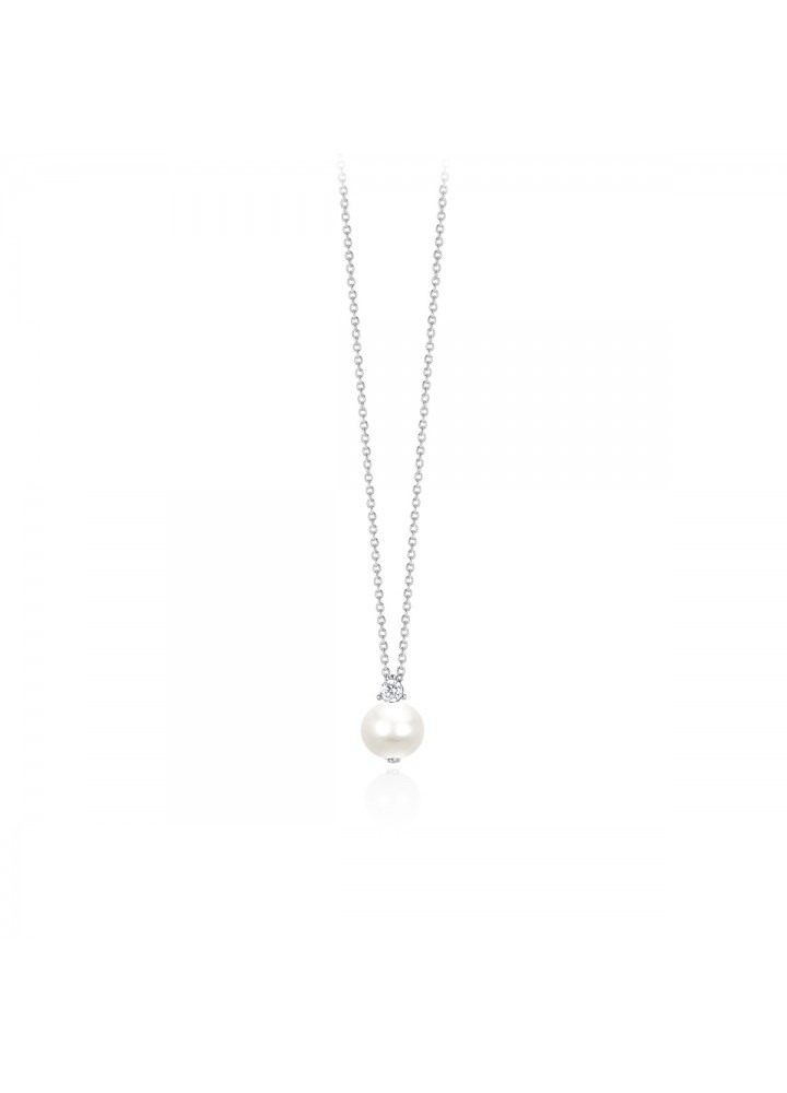 Girocollo con Perla coltivata  di 8/8.5 mm e Zircone. Lunghezza 45 cm