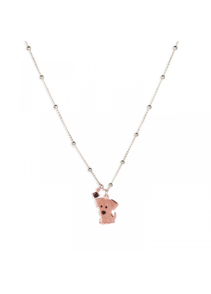 Collana Jack & co Argento, Doggy Castone Dark Grey, Rosegold