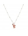 Collana perlata, Cane con smalto nero, Castone grigio scuro placcati oro rosa. Lunghezza: 33 – 45 cm.