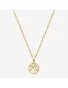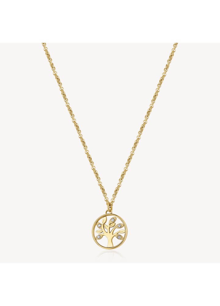Collana girocollo in acciaio 316L, con finitura color oro, pendente a forma di albero della vita e cristalli crystal.