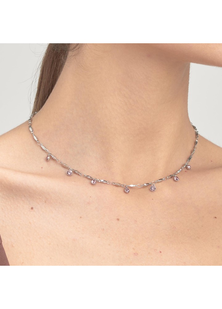 Collana in acciaio 316L e cristalli light amethyst. Gioiello della collezione Symphonia. Lunghezza 450 mm. Referenza BYM140