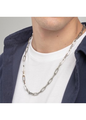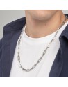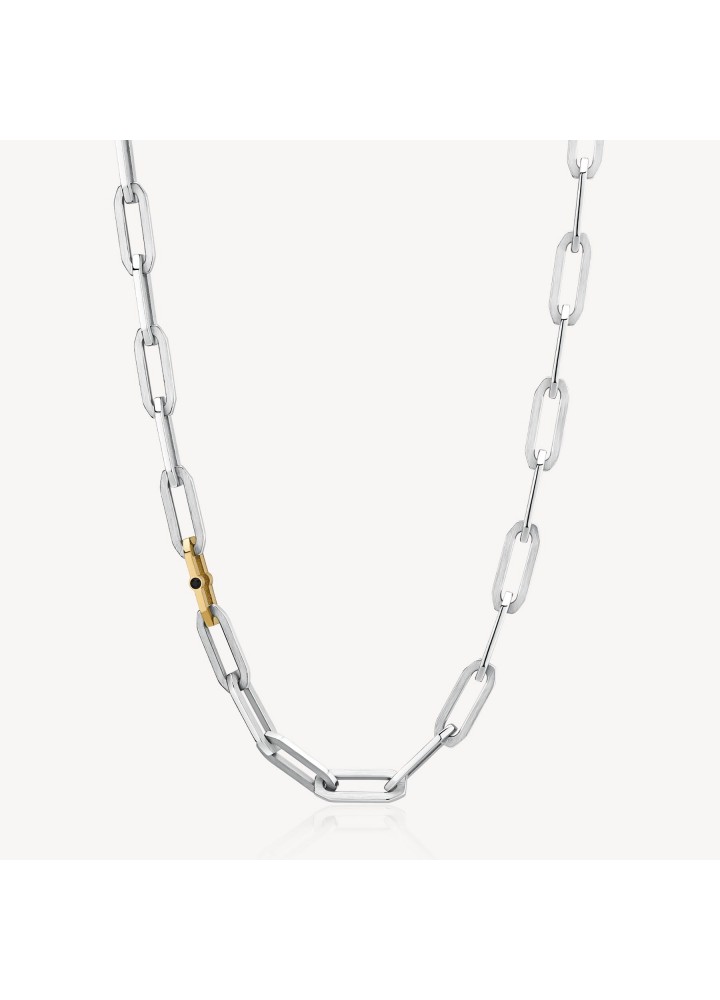 Collana in acciaio 316L lucido e satinato, pvd oro e cristalli jet. Gioiello della collezione Caliburn. Lunghezza 650 mm. Referenza BBU01