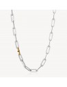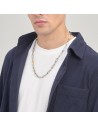 Collana in acciaio 316L lucido e satinato, pvd oro e cristalli jet.