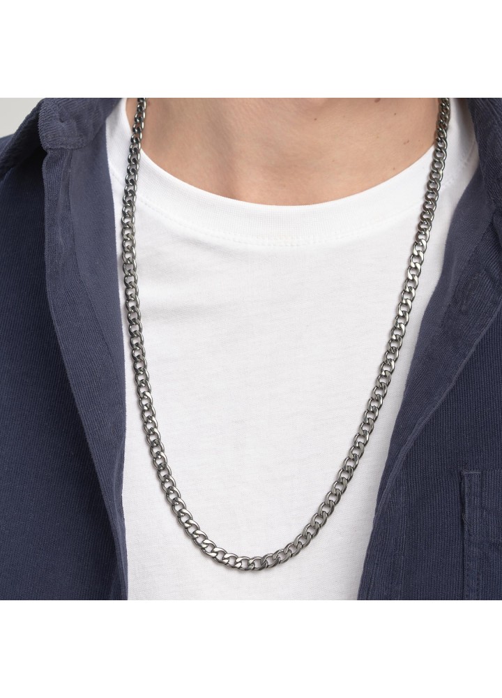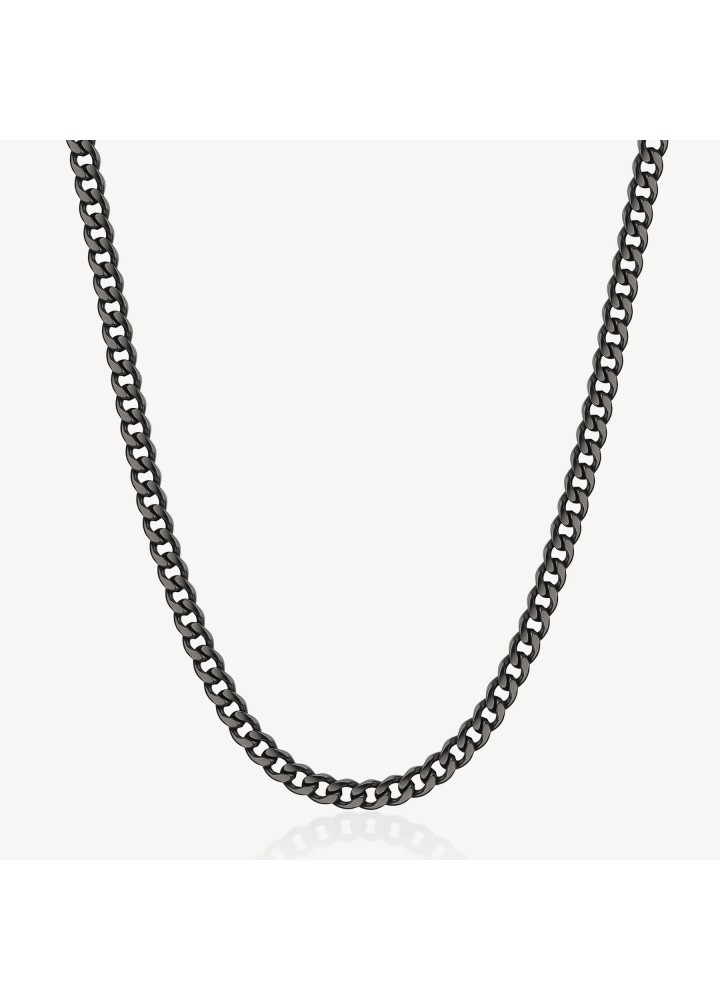 Collana catena lunga in acciaio 316L e finitura pvd colore rutenio.