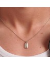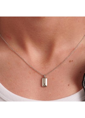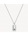 Collana girocollo in acciaio 316L con pendente a forma di tag e cristallo nero.