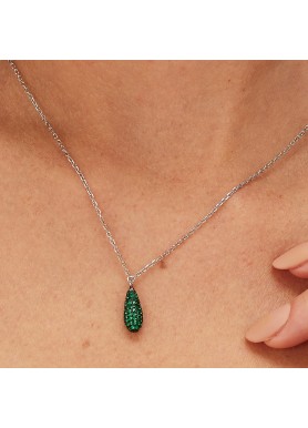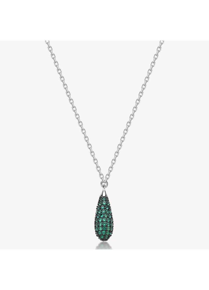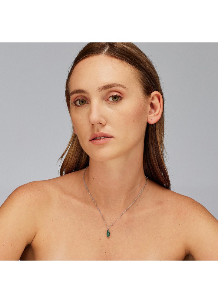 Collana girocollo in argento rodiato 925‰ e pendente con galvanica colore rutenio e cubic zirconia colore emerald